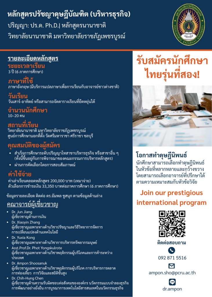 รายละเอียดการเปิดรับนักศึกษาไทยรุ่นสอง!!!